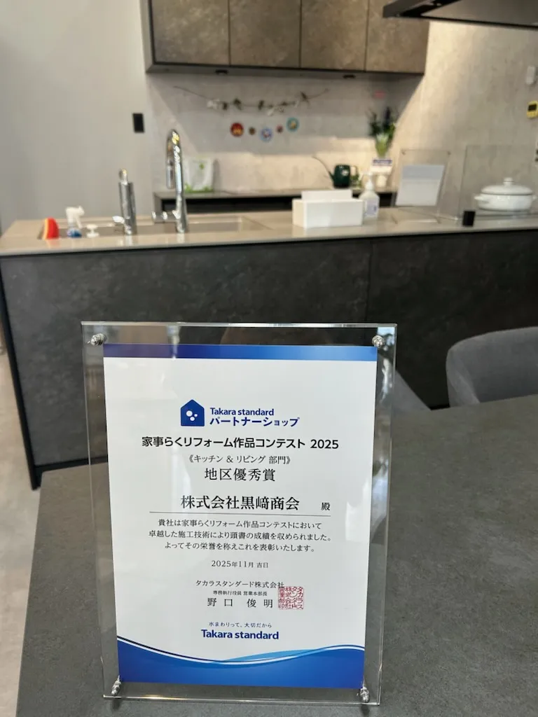 このたび、タカラスタンダードの「家事らくリフォームコンテスト」において、キッチン&リビング部門で地区優秀賞を受賞いたしました。