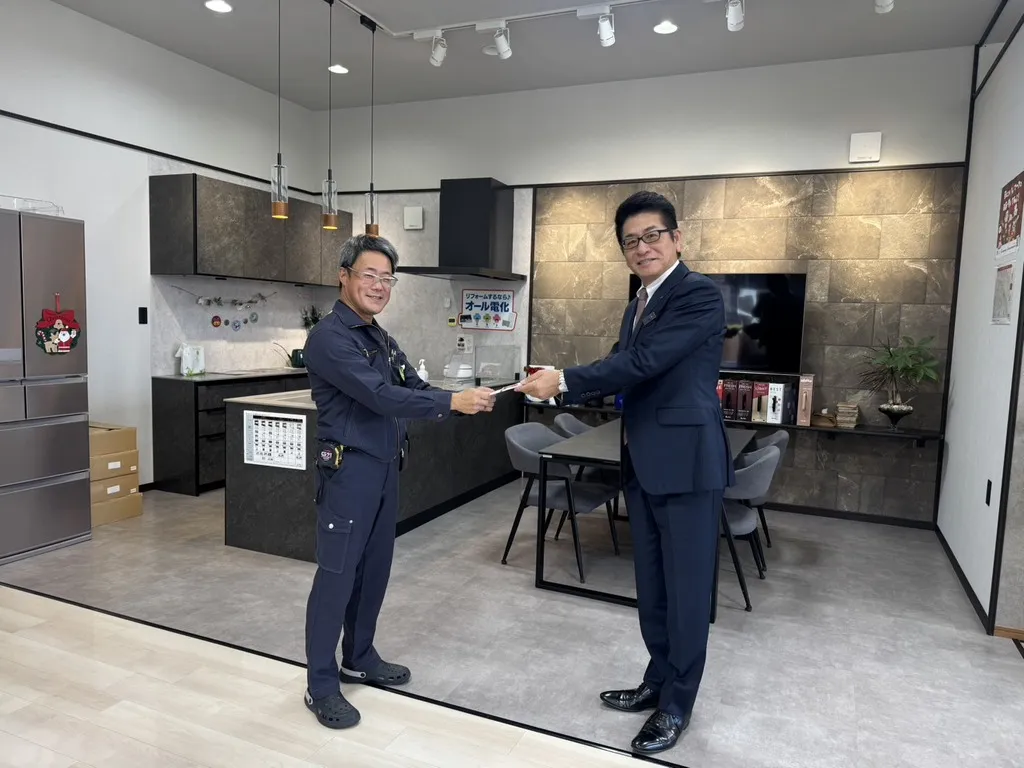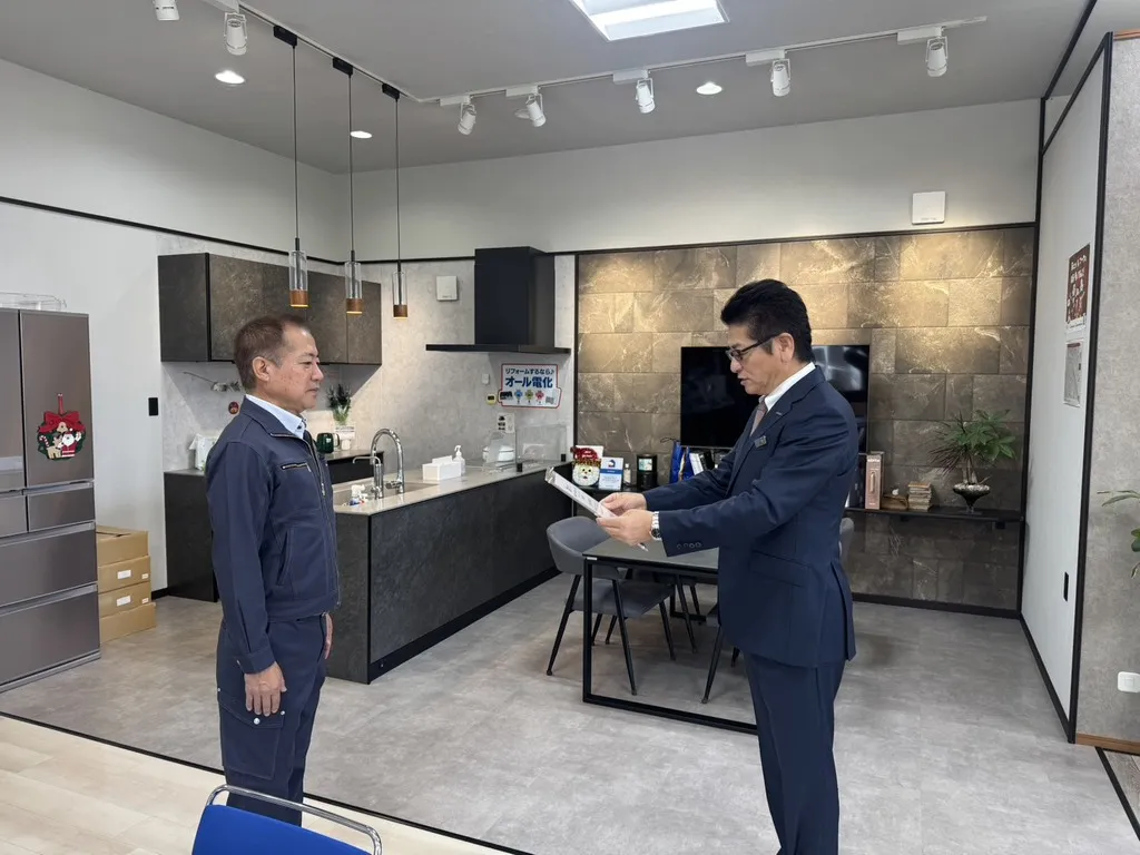 弊社ショールームにて授賞式が行われ、支社長様ならびに久留米営業所の所長様より表彰を頂戴しました。