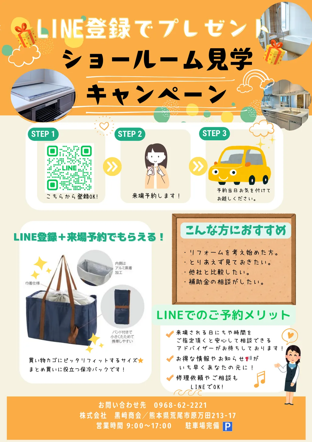 LINE登録+来場予約で便利な保冷バックプレゼント🎁