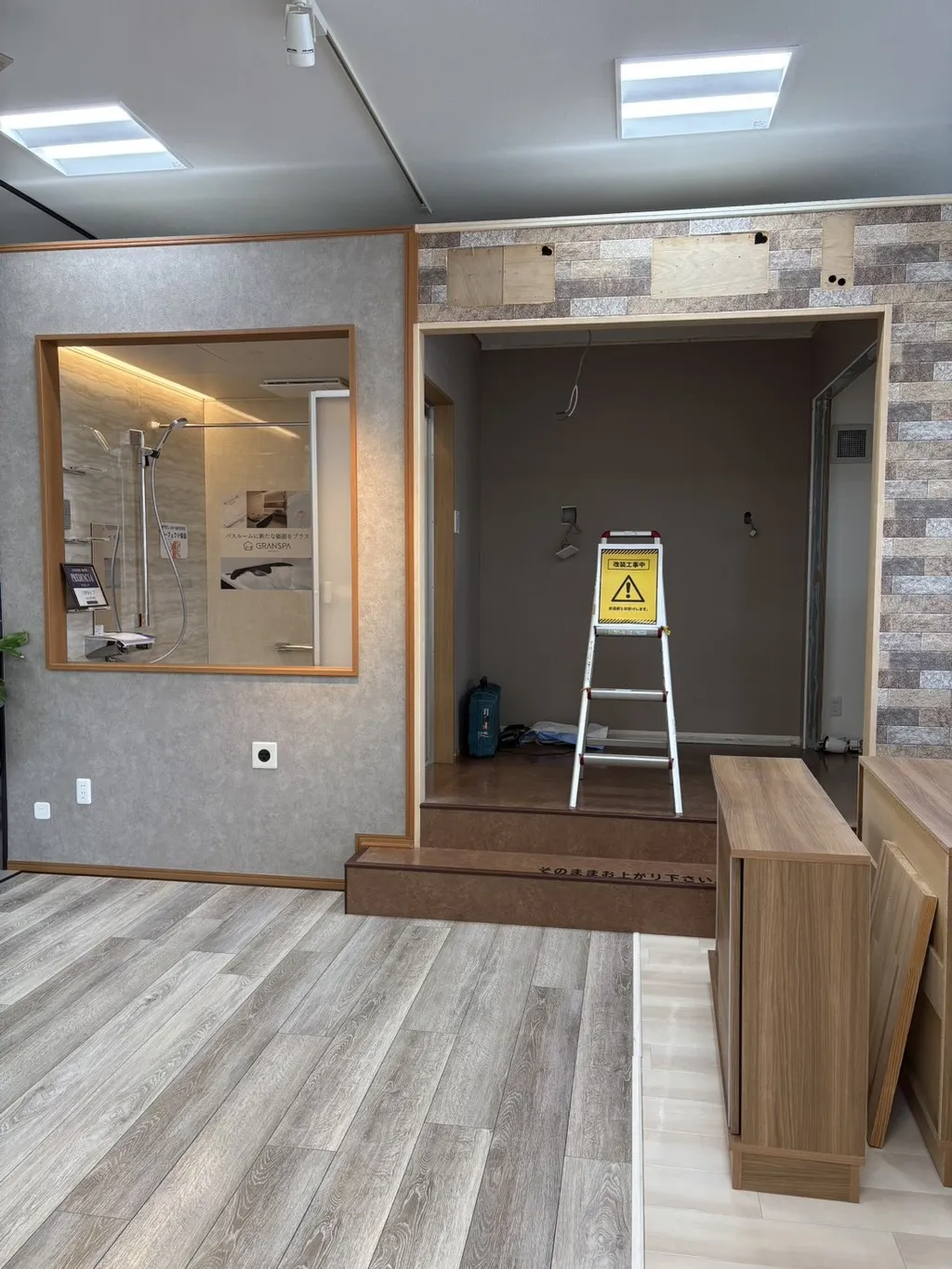 現在、ショ-ル-ムの一部エリアにて、より快適でリフォ-ム後のイメ-ジがわきやすい空間へと