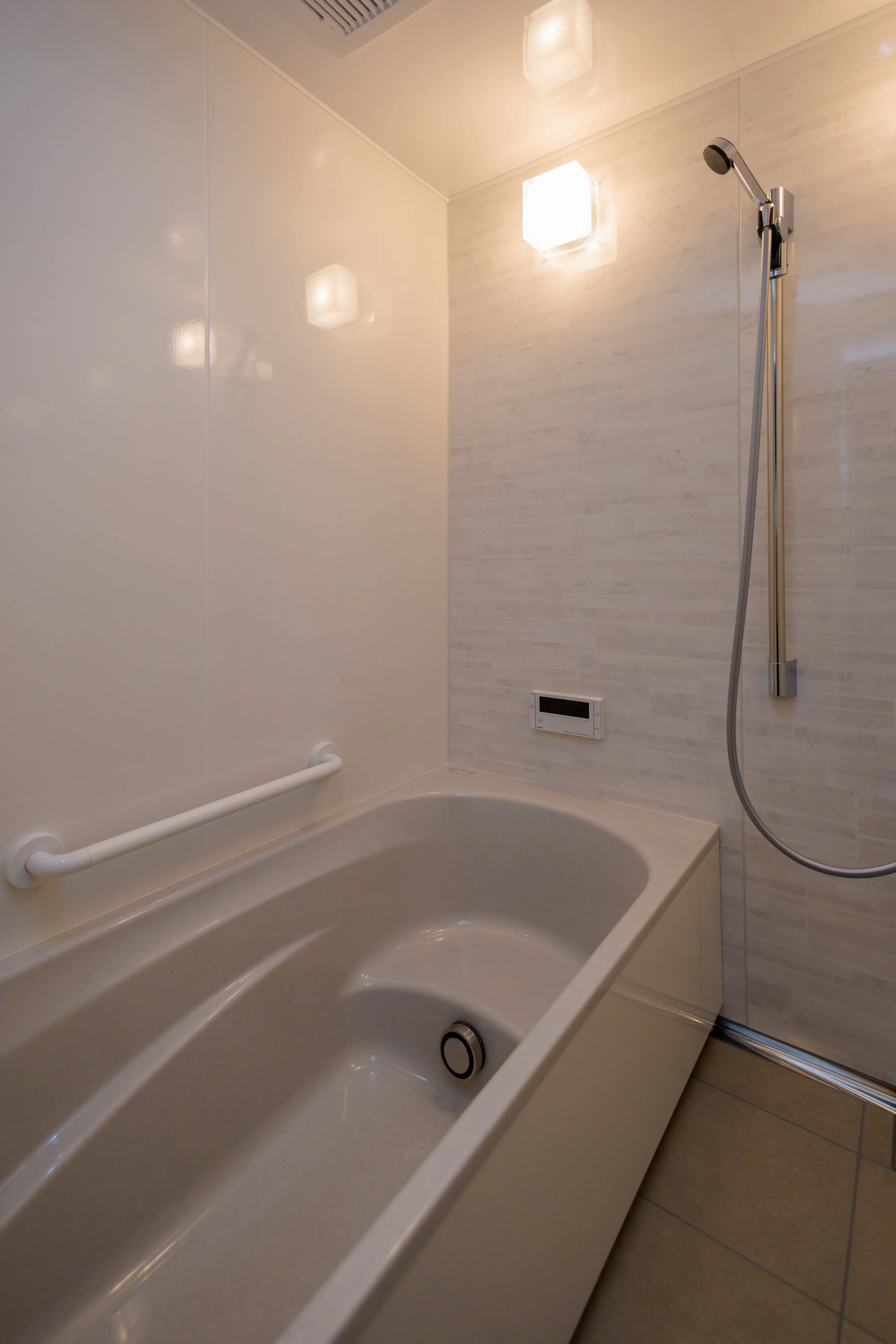 明るく上品な石目調パネルに、ゆったりとくつろげる浴槽を組み合わせ、毎日の疲れを癒す特別な空間に仕上がっております。