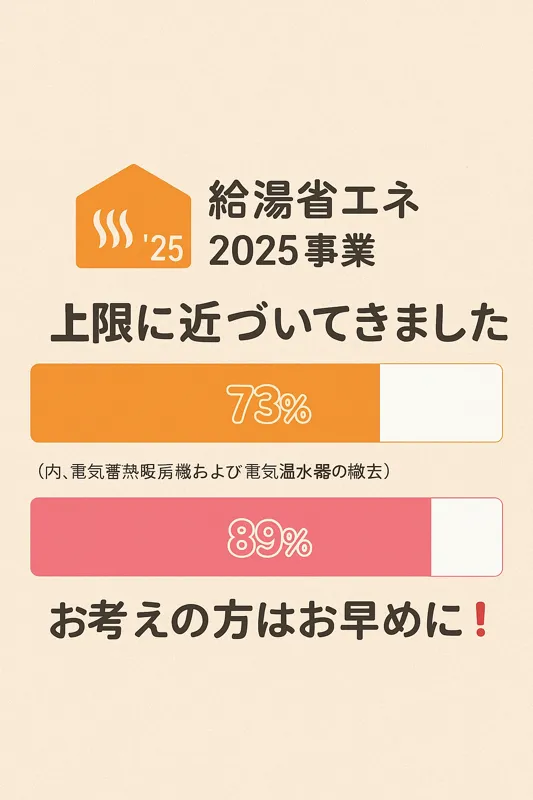 現在、「給湯省エネ2025事業」の補助金申請が全国的に増加しており、予算に対する申請額の割合が高くなってきています。